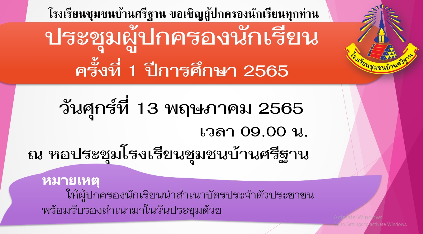 ประชุมผู้ปกครองนักเรียน 1/2565